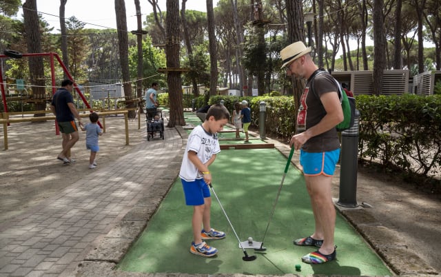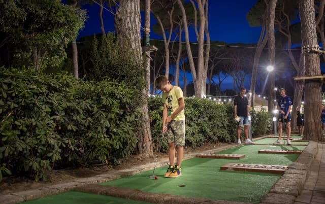 One of our guests’ favourite activities: a 12-hole mini-golf course set up around the Piazza Italia play area. Who can sink the most balls? Ask for a set at the dedicated desk.